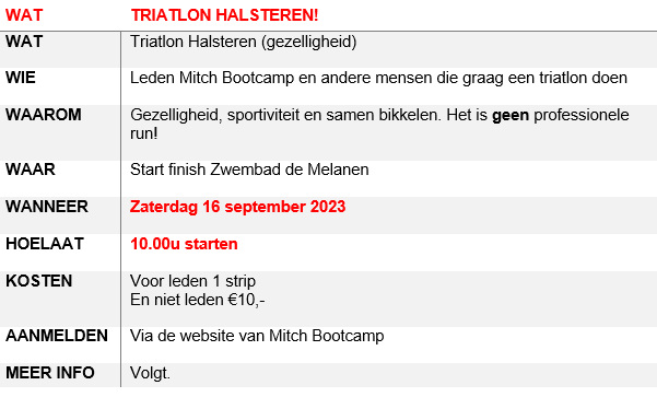 Na een groot succes enkele jaren geleden komt er weer een triatlon!!