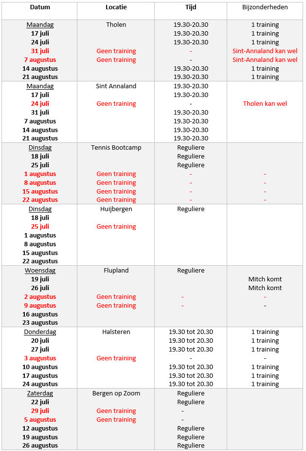 En dan is het alweer juli! De tijd van de zomervakantie is voor veel mensen aangebroken. Heerlijk genieten in Nederland of in het buitenland! Veel Bootcamptrainingen gaan gewoon door, maar check even het vakantierooster voor bijzonderheden. Let op: er zijn een paar kleine wijzigingen!